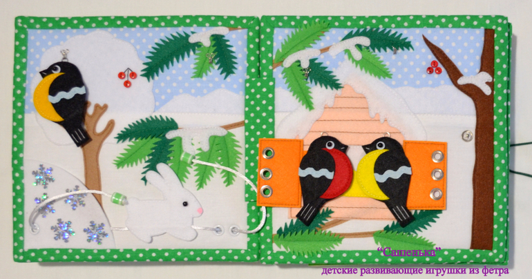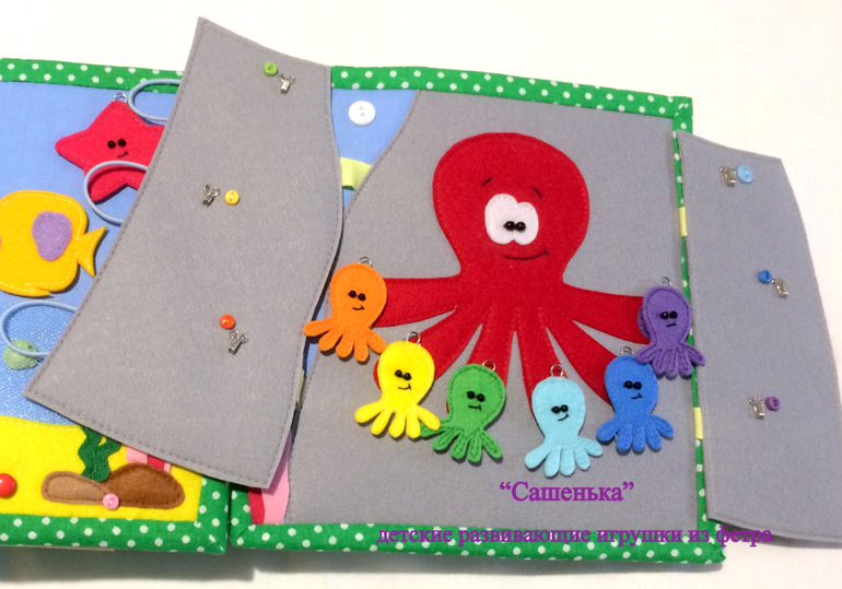 Развивающие игрушкиДобрый день!! Разрешите показать Вам мою книжечку!! Сюжеты, конечно, не новые, но все же... Книжечки не шила уже почти 2 года, а эту осилила за 12 дней!!! Очень старалась))) Работа получилась очень объемной, содержательной и познавательной!!! В книжечке 44 съемных элемента, все они крепятся на пуговицы, кнопки, крючки, липучки, магниты, также добавлены шнуровка, пертяжки и "прячущиеся" элементы!!!! С помощью книжечки развиваем внимание, память, логику и, конечно, мелкую моторику!!! Спасибо за внимание!! Подкат более 5 фото!!!