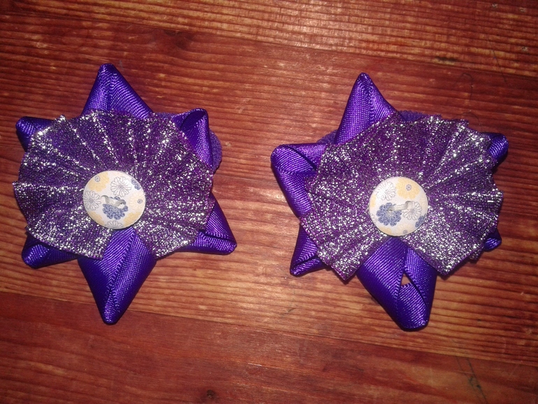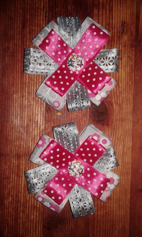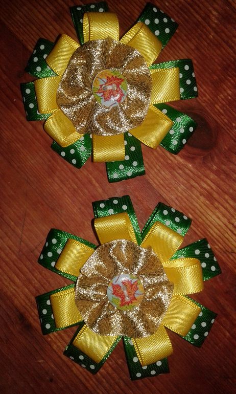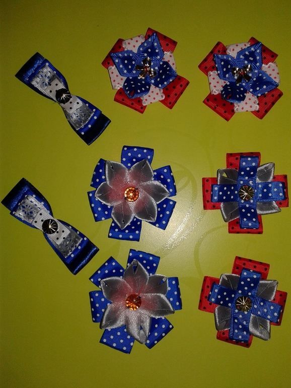 это первая пробная партия.На обратную сторону вырезаю кружочек из фетра и на горячий пистолет креплю резиночки соответствующие цвету бантика