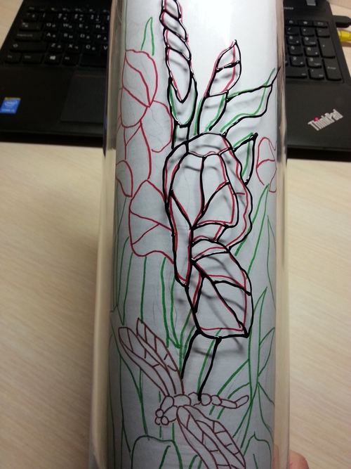 Вставляем рисунок в вазу, закрепляем скотчем и обводим контуром