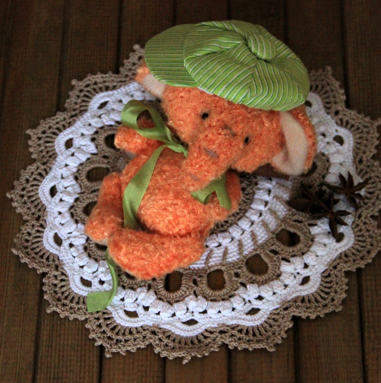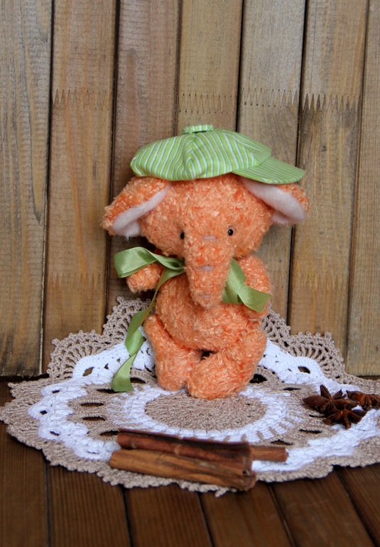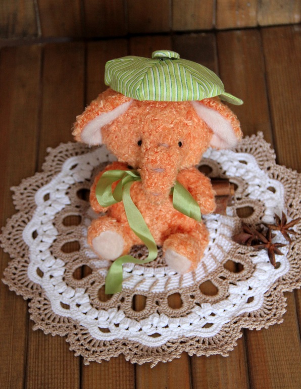 На слоненке хлопковый берет и шелковая лента. Размер 12 см. сидя.