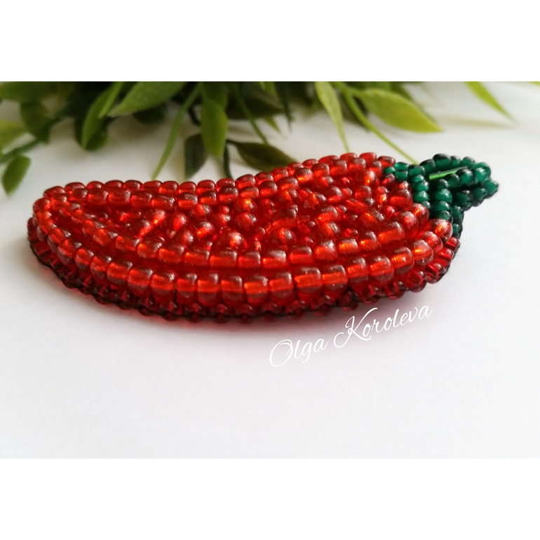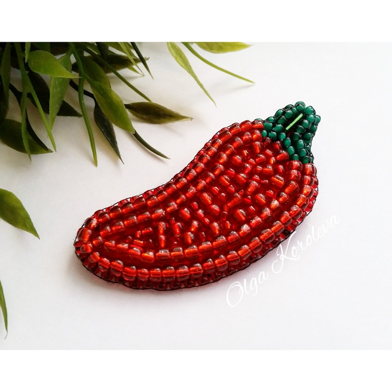 "Острый перчик". Брошь из бисера