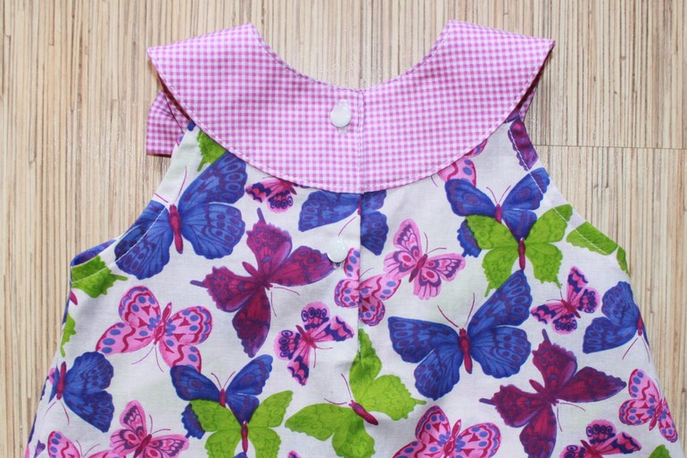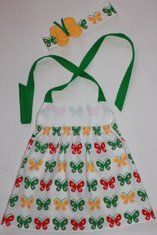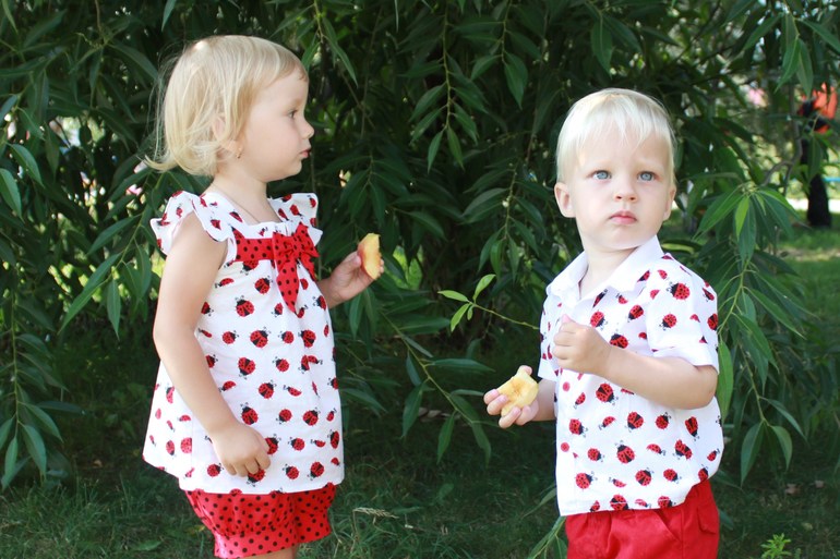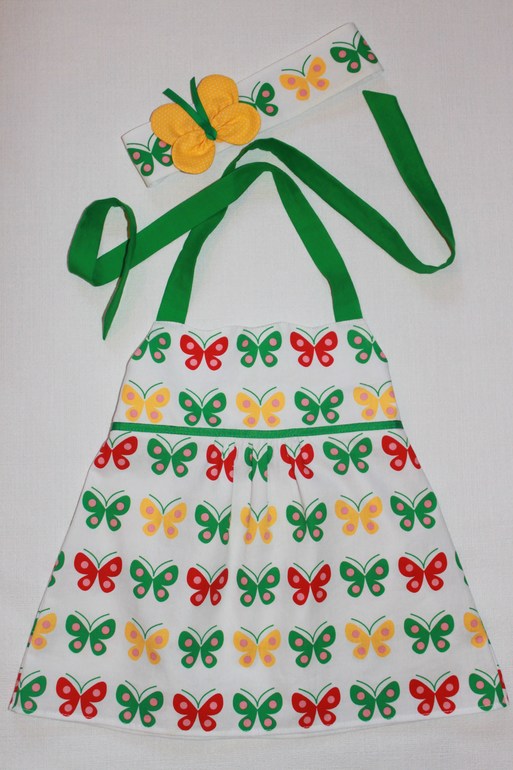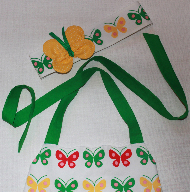 На самом деле шорты были сшиты для арбузного топа - точного повтора Полинкиного, но чтобы они чаще выгуливались, решили сшить еще один топ для нового образа, зеленые бабочки идеально по цвету подошли.