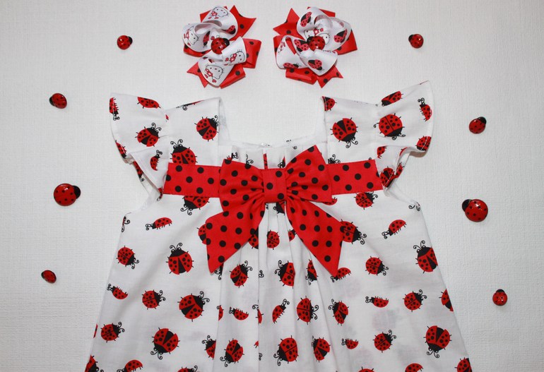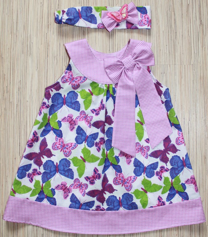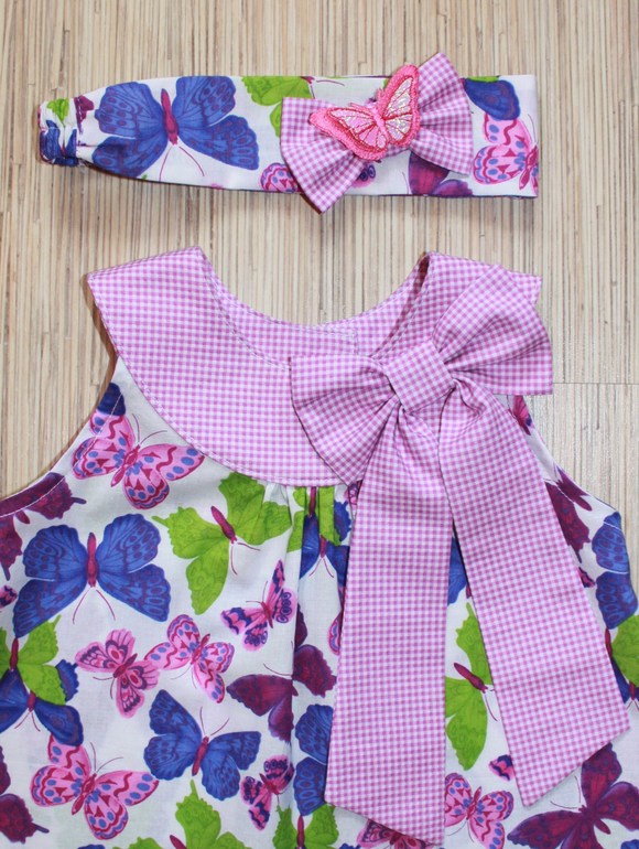 Платье, повязка, трусики и бант для шляпы. Такой комплект получился для Лизочки, мама ее оказалась такой же любительницей повязок, заколок.., завершающих образ, как и я. Сшито из американского хлопка.