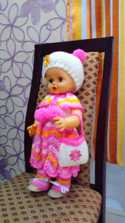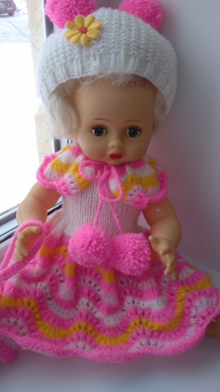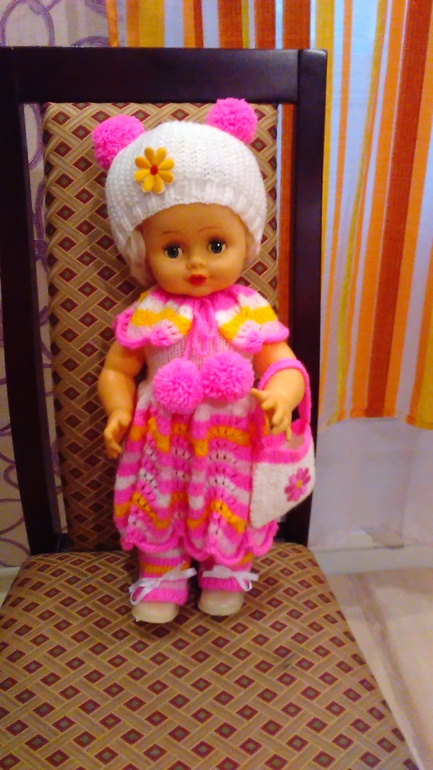 Вязание спицамиПохвастаюсь)))) Была у нас старая кукла, которую хотели выкинуть. А я обвязала её и дала ей вторую жизнь. Теперь это куколка для моей доченьки))) вроде получилось не плохо😊