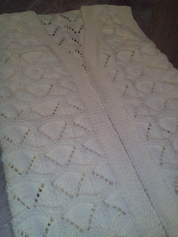 2. Кофточка для малыша. На 4-6 мес. Пряжа Ализе Шекерим бэби. Расход 1 моток. Спицы 4.