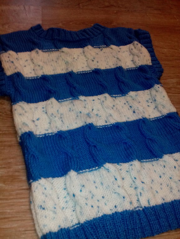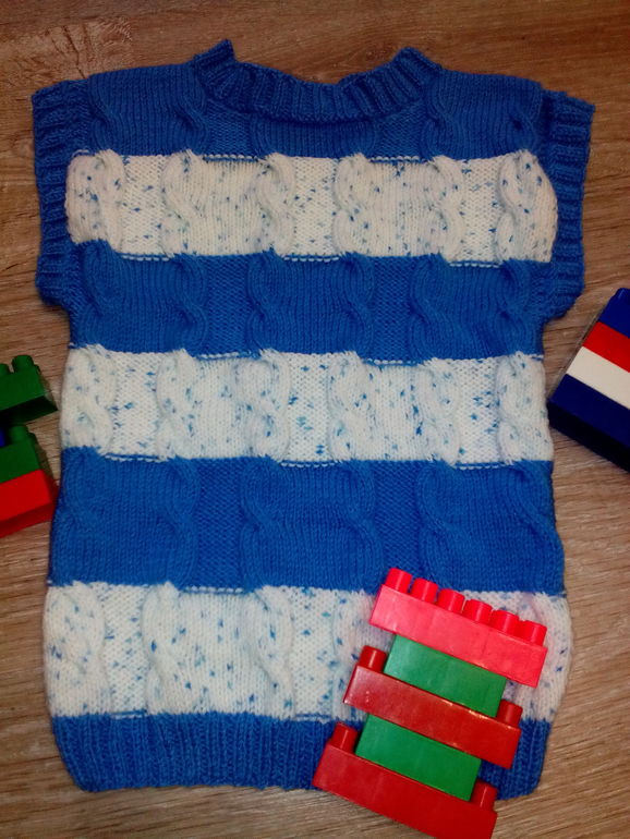 5. Безрукавочка для мальчика. На 5-7 лет. Пряжа Нако Бэби и Ярн Арт Бэби. Расход 4 мотка. Спицы 4.