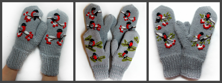 Спасибо))) Снегири - фелтинг, а остальное - вышивка))) В рисунок на манжете - самая простая косичка))) Набираете на спицы четное количество петель. Провязываете два ряда, чередуя две лицевые и две изнаночные, в каждом третьем ряду перекрещиваете лицевые петли)))
