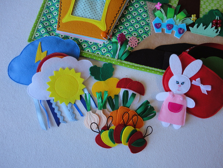 Играем и развиваемся ))) Развиваем мелкую моторику рук. Осваиваем разные виды застежек (пуговки, липучка, крючки, магнит). Учимся счету от 1 до 5. Учим понятия: много-мало-ни одного, высоко-низко, лево-право. Учим овощи и фрукты. Узнаем, что такое распорядок дня: проснулись-позавтракали-погуляли и т.д. Развиваем воображение взрослых и детей )))