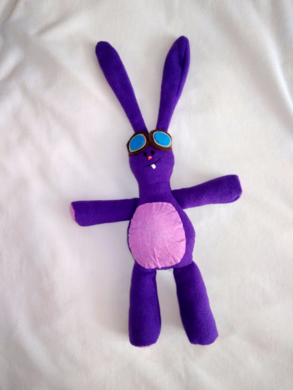 Игрушечный мир - животныеЭто подарок Васюнке на День рождения. Очень уж она этот мультфильм любит. Заяц специально сшит в виде Катиной игрушки до превращения. Материалы - флис и фетр. Чтобы сделать мордочку, пришлось вспомнить навыки вышивания и откопать запасы мулине.