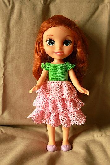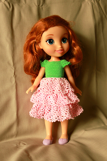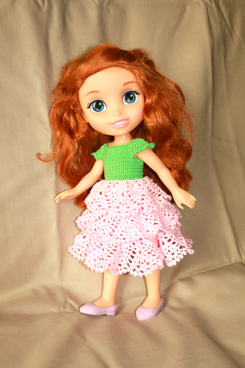 Платье "Розочка", крючком для куклы Дисней + МК, описание
