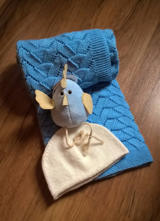 Вязание спицамиСвязала плед для племянника, который в воскресенье родился)) Шапочка будет на вырост)) Вчера отправила..размер 1*1 м, пряжа Бамбино от Камтек, 8 с небольшим мотков. На шапочку 40 см меньше половины моточка