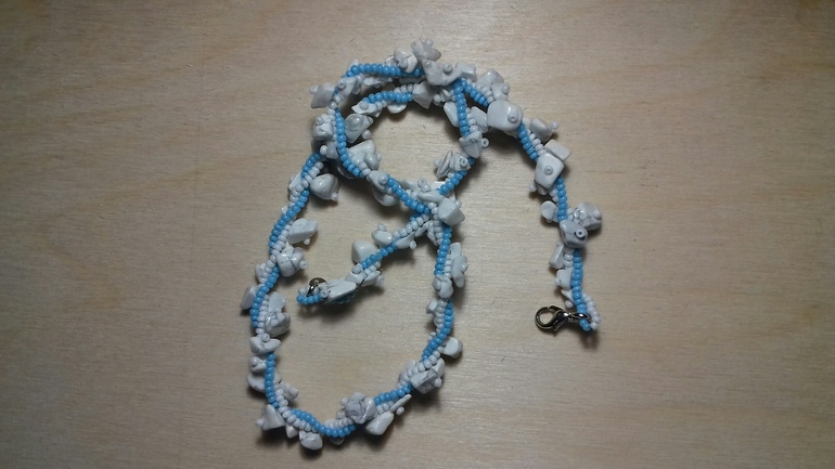 Выбор действительно очень большой. Я в мире бижутерии ни разу не специалист. Знаю только, что чешский бисер очень хвалят рукодельницы. Я, собственно, его и набрала. Но столько всего там есть и кроме бисера. Молды, бусины, кабошоны, фурнитуры вообще какой только нет (я даже в предназначении некоторой не разобралась), леска, натуральные камни (точнее, бусины из камня). Пуговиц набрала целый вагон (там очень много классных деревянных пуговиц и что-то вроде этикеток). Боюсь, что меня теперь и это увлечение очень затянет. А у меня хомут для подруги лежит недовязанный.