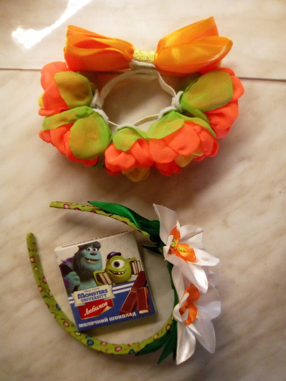 дочке очень понравились украшения, (не очень любит собирать волосы, уговаривать нужно, а тут сама просит кок собрать)))
