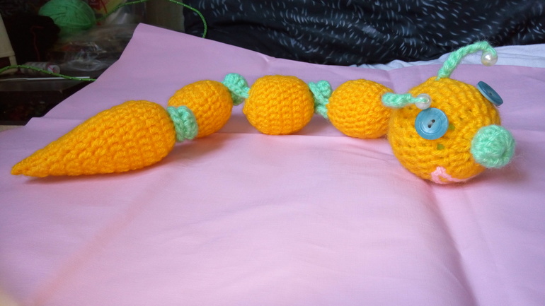 Старшая вообще сказала, мам это не гусеница, это набор продуктов из моркови,3мини ананасов и чьей-то головы )))