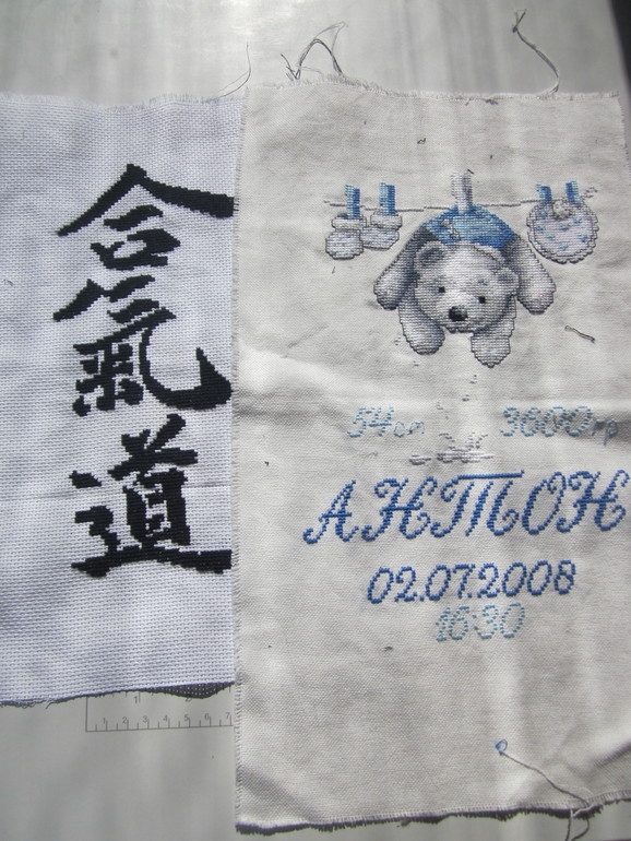 Метрика тоже очень понравилась. А еще был сюрприз вышивка с надписью Айкидо для нашего папы