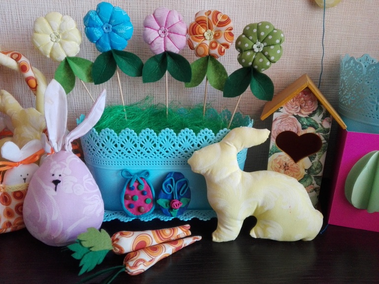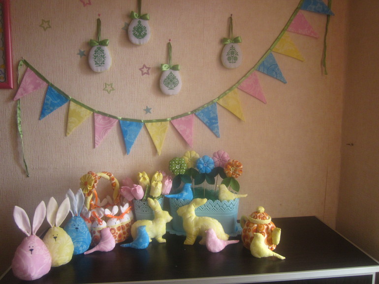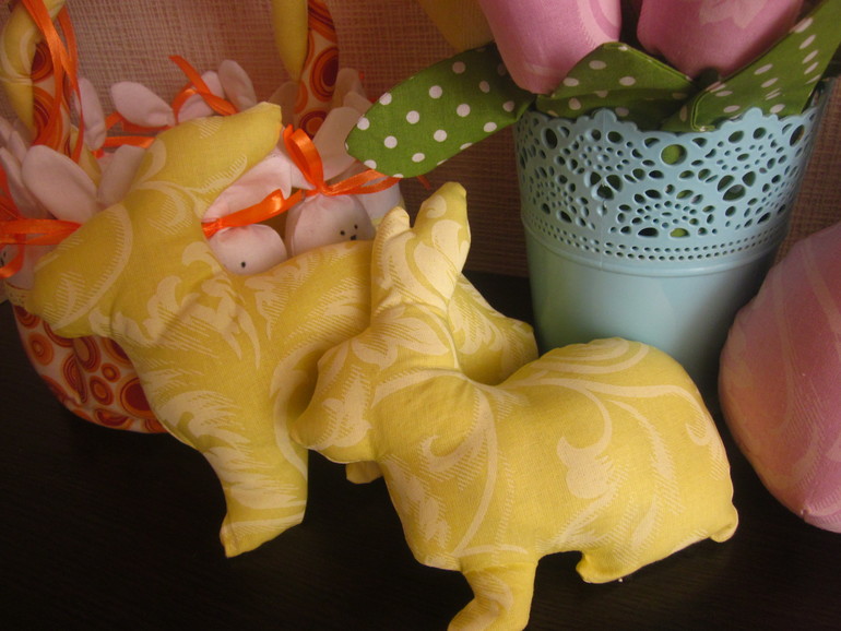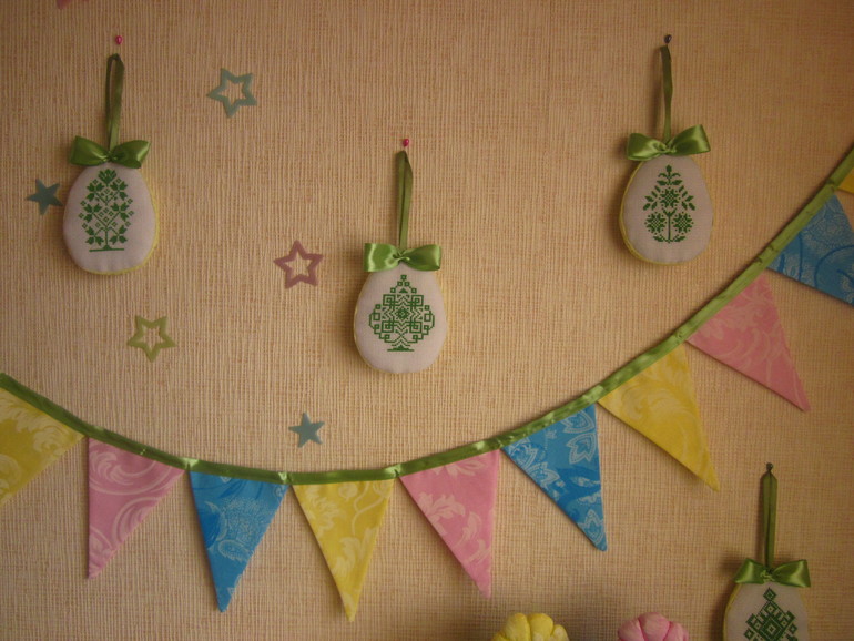 тут я поняла, что у меня получилось много зайцев и совсем нет яиц, так получились пинкипы с вышивкой