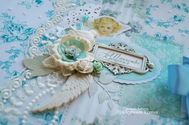 СкрапбукингНе свойственный мне маленький альбомчик, 20на20см. Альбом про таинство крещения, как обычно с мягкой текстильной обложкой и в переплете.