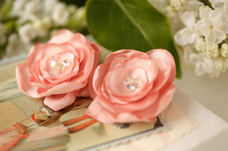 Цветочного настроения Вам в ленту! Пара сорванная с ветки атласной сакуры с сердцевинкой из биконусов Swarovski ...