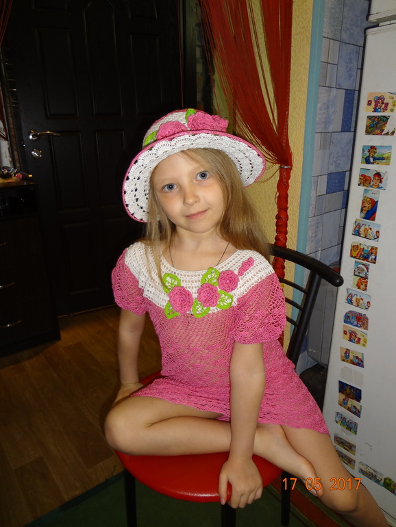 Вязание крючком (РАБОТЫ И СХЕМЫ)Пряжа YARN ART Violet, крючок №1. Ушло 4 мотка розового и 1 белый. Конечно нужно еще подкладку пришить.
