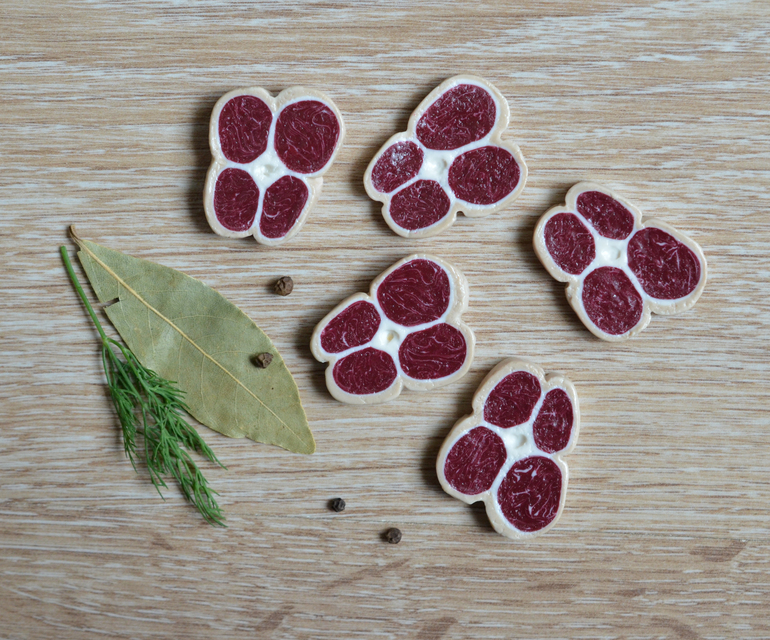 Лепка из пластики (полимерная глина) (ТОЛЬКО ГОТОВЫЕ РАБОТЫ)Вот такие вот стейки для кормления игрушечных животных и детской кухни) Размер примерно 2,5*1,5 cм.