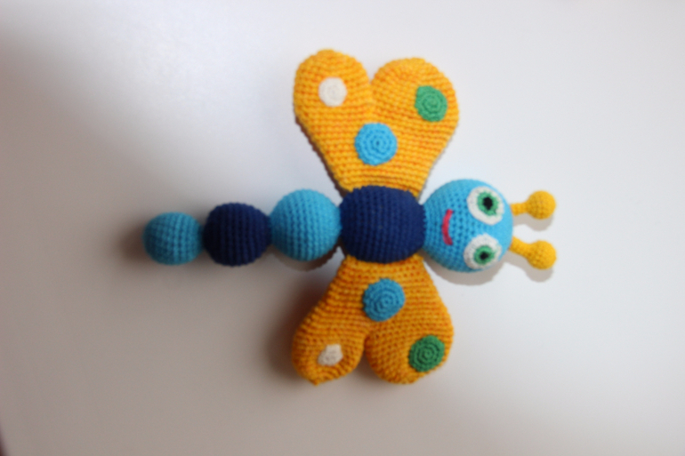 Погремушки связаны из хлопковой пряжи по описанию Е. Архиповой
