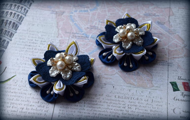 Цветы из ткани и форма. Канзаши. Украшения для волос.Давно я не показывала свое школьное тут, а тем временем темпы все нарастают к новому учебному году. Кому интересно, прошу)