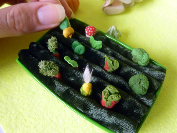 А овощи ты сама лепишь? Я вот до огорода не додумалась, а налепила просто еды для крыс) многое не получилось, лепила из папье-маше и разукрашивала