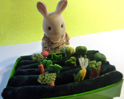 Бывают наборы плодов с прилагающимися «огородами», где грядки рассчитаны строго под «родные» овощи. Но у нас так получилось, что рацион наших зайцев-сильванцев (Sylvanian families) расширяется и расширяется - миниатюра 1:12 прочно заняла свои позиции в списке любимых игрушек, а вот огородик как был «на четыре морковки» так и остался... Срочно нужны новые грядки! Предлагаю быстрый и незатратный способ сделать огород для посадки миниатюрных овощей из полимерной глины.