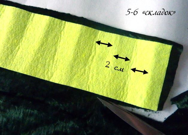 Если выпрыгивает - отрезаем одну складку (или больше, я вот по итогам первого опыта решила аж 8 сделать, а материал другой - влезло только 6!) и снова примеряем. Можно приклеить суперклеем при желании. Готово.