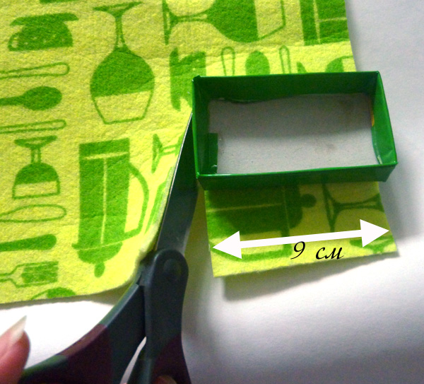 Прикладываем коробочку к листу «наполнителя» - мат для сервировки, толстый фетр, тонкий поролон или та самая трехслойная «подложка для сушки». Вырезаем прямоугольник шириной, на 1 см меньше длины коробки.