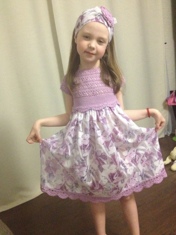 "Цвет сирени" комбинированное платье крючок+ ткань.