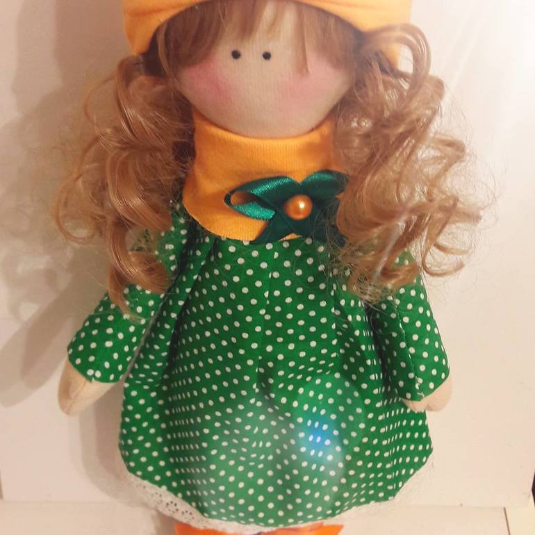 Вот такая куколка появилась. Уж очент мне нравится сочетание зеленого и оранжевого. Ничего лишнего.