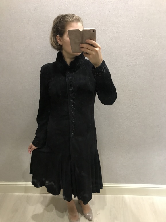 Вопрос/ответ, поиск схем, выкроек, советов, магазинов и т.дПривет всем рукодельницам!Я с таким вопросом.давно висит в гардеробе пальто из мягчайшей дубленой кожи,а так как фасон его достаточно нарядный оно так и продолжает висеть ,да еще и косяки некоторые присутствуют на нем.Пришла мне идея в голову его перешить,посмотрите пожалуйста-какие идеи у вас?у меня идея убрать клешеную часть,укоротить и вместо кнопок что то надо они как то раскрываются!прошу под кат🤔
