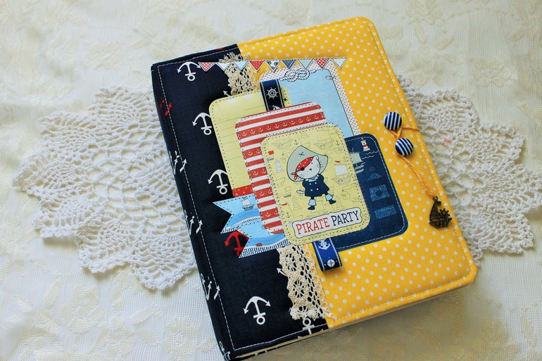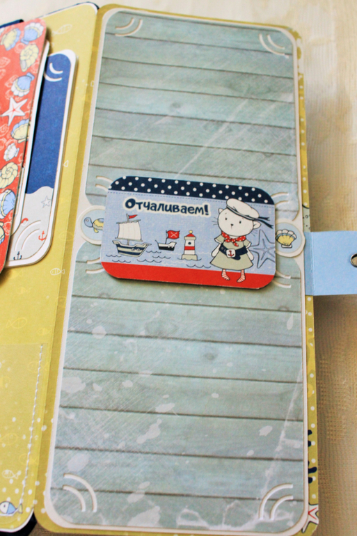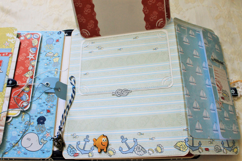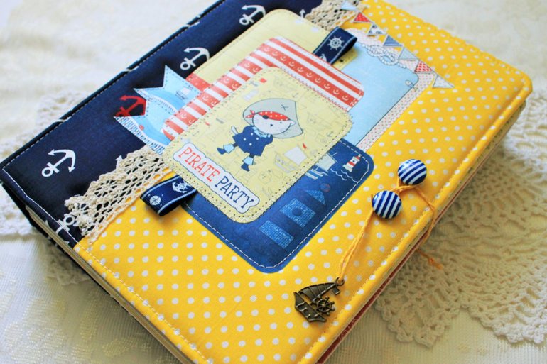 СкрапбукингЭта яркая бумага не очень популярна, но она такая классная! Альбом с забавными котиками-пиратами формата 20*25см, в корешке 7см, 4 разворота (8 страниц), вмещает в себя 51 фото 10*15см и 6 фото нестандартного размера. Также в альбоме есть 3 конверта - один маленький для записок , билетиков (закрывается на магнит) и 2 конверта для дополнительных фото. В альбоме есть 6 кармашков, в которые также помещаются фото 10*15см. На последней страничке есть капля интерактива - меняющаяся картинка (делала по МК Вероники Беньковской) Обложка альбома обтянута хлопком и проложена тонким поролоном для мягкости, закрывается на вощеный шнур и 2 пуговки