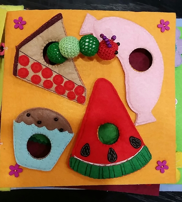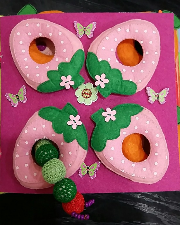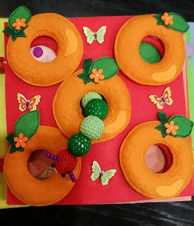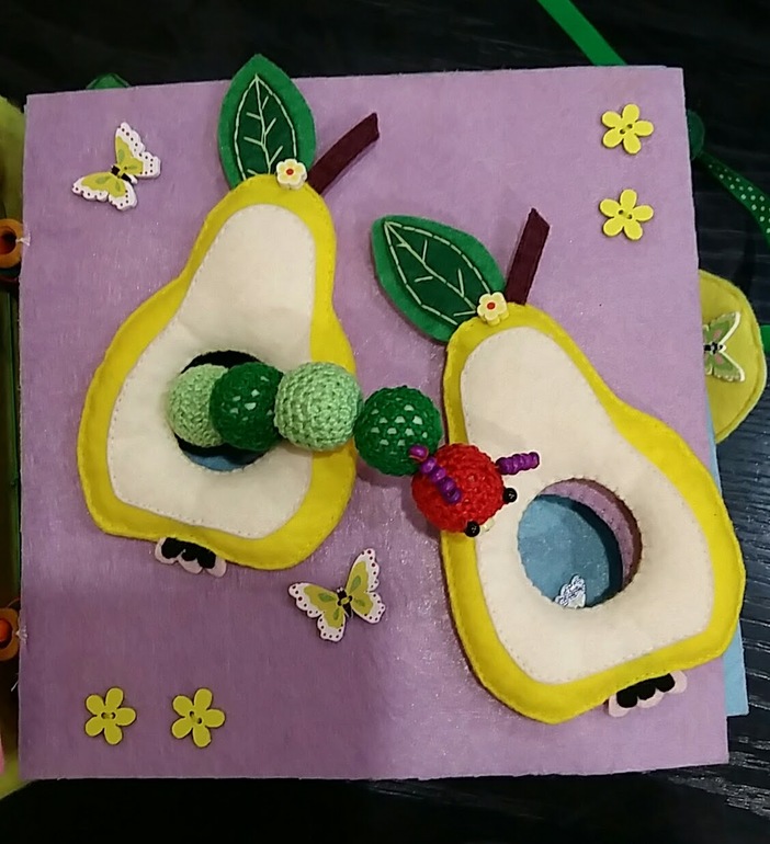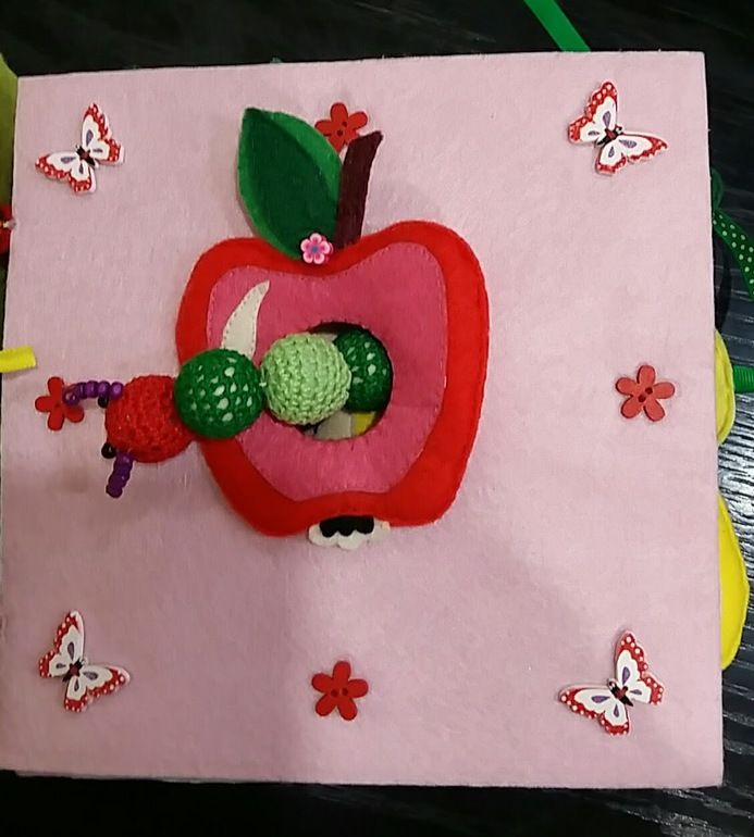 Развивающие игрушкиЛистая просторы интернета наткнулась на работы мастериц и очень впечатлилась. Я раньше даже и не знала о существовании такой интересной сказки. Захотелось тоже для своей малышки сделать что то похожее))). Сначала начала делать фрукты,а потом поняла,что хочется что бы их можно было и нанизовать отдельно и,что бы в книге на липучке держались. Моя задумка получилась и я очень рада этому. Это моя первая книга из фетра и планирую продолжить шить развивайки для дочки.Очень много фото!!!!!