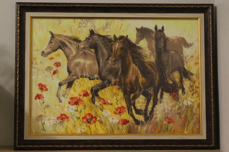 Оооо!!!! У меня эта работа тоже в процессе... Только процесс затяжной(((( Сейчас вышито (и отложено) 6/8 работы)))) Начала ПЕРЕД годом Лошади... даже не помню сколько лет (зверей) назад это было))))