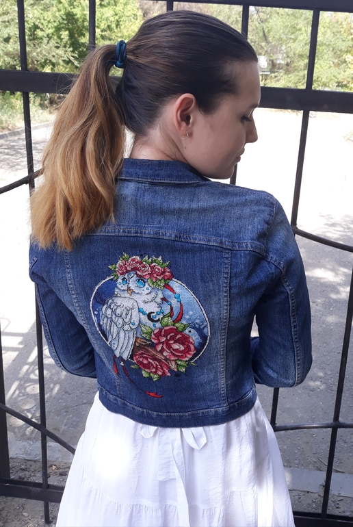 Вышивка картин. Крестиком, гладью, бисером, стразами, лентами, схемы по вышивкам, процессыПокажу и здесь свою джинсовку с вышивкой.