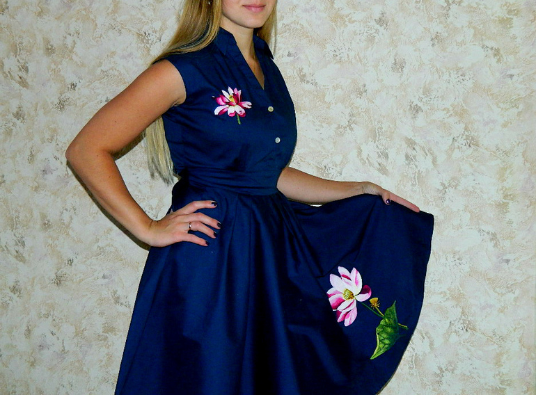 Вышивка картин. Крестиком, гладью, бисером, стразами, лентами, схемы по вышивкам, процессыВот так украсила платьице)