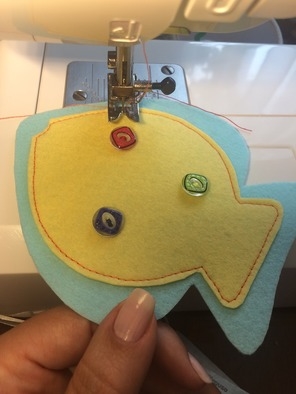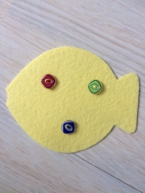 Начинаем собирать. Сначала надо к желтой рыбке пришить пуговицы