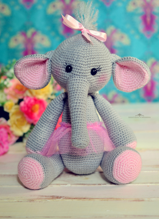 4. Слоняшка Мила Связана по описанию MyCrissieDolls. Рост Милочки 30 см. Ножки подвижны, умеет сидеть и стоять. Связана из детской гп пряжи, наполнитель синтепон.