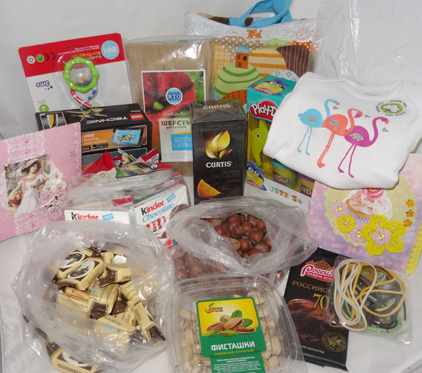 Кроме рукодельных ценностей в посылке была гора подарков для всех.