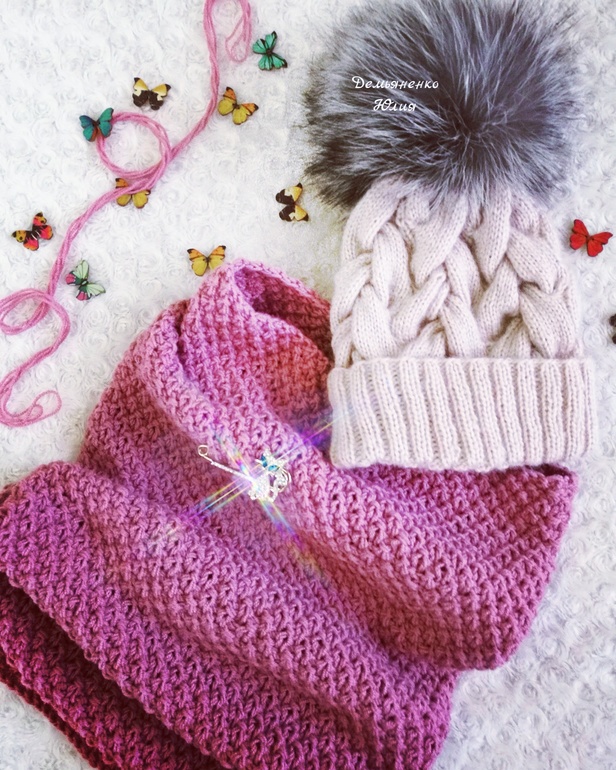 Объемный снуд жемчужным узором+пуховая шапочка косами и образовался чудесный зимний комплект со сливочным послевкусьем 😋❄🍧