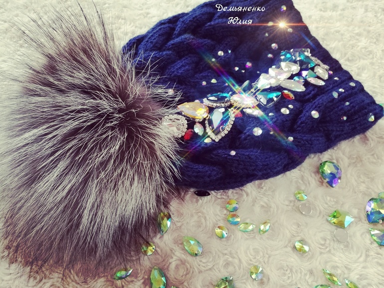 Вязание-это художественное запутывание ниток😂я совсем запуталась в жизни😂 сегодня закончила путать эту чудесную зимнюю красавицу😊👍с ювелирным стеклом, стразами и большим чернобурковым бубоном☝