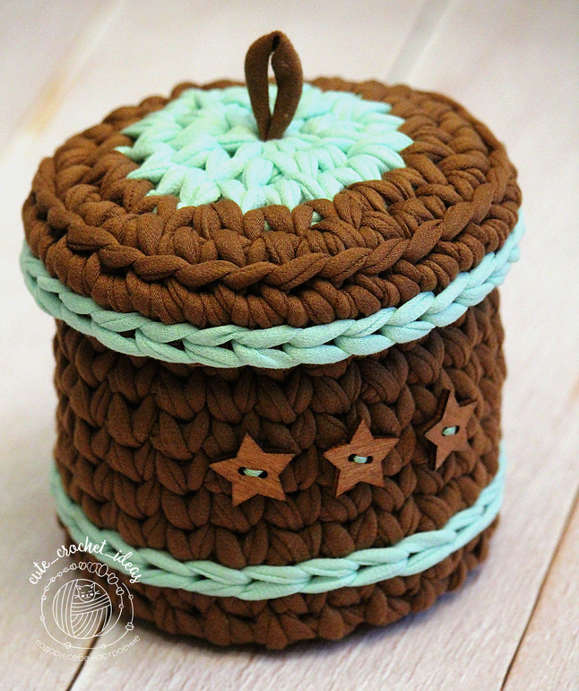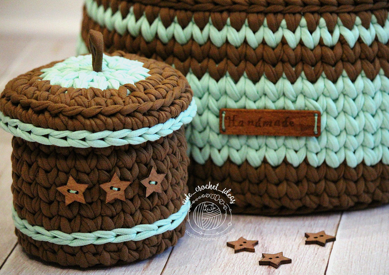 Вязание крючком (РАБОТЫ И СХЕМЫ)Моё любимое сочетание цветов, связались быстро и с удовольствием, две корзиночки, плюс первый опыт вязания крышки 🙃