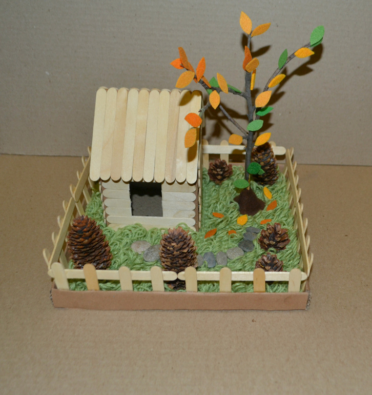 Классно! Тоже что-то наподобие собиралась соорудить с домиком, но сделали мы в итоге ежика на полянке) Дети с огромным удовольствием втыкали сосновые иголки в свеженького гипсового ежа)))