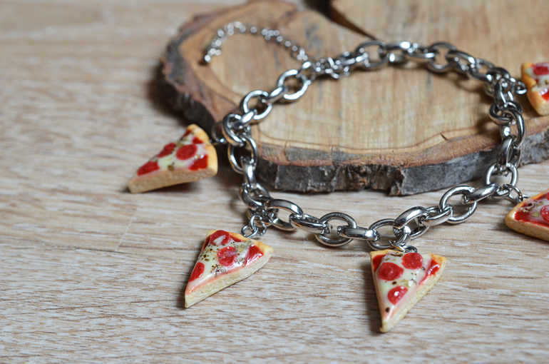 3. Браслет с подвесками-пиццей. Длина цепочки 19 см + цепочка-удлинитель.