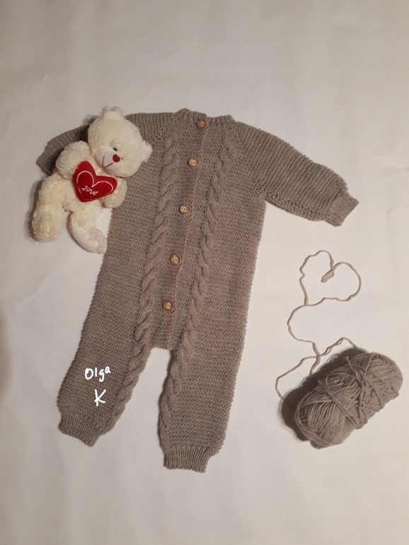 Вязание спицамиСвязался мягкий, тёплый и лёгкий комбинезон, размер 68-74.