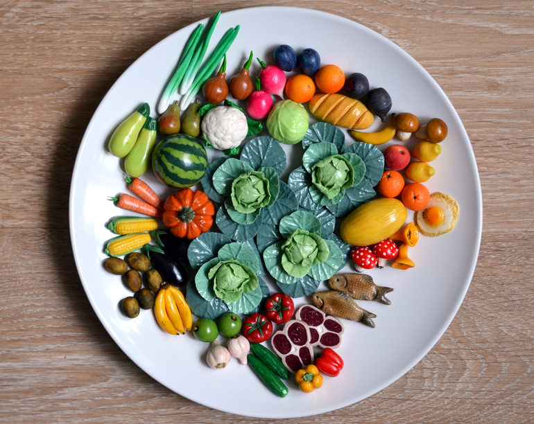Лепка из пластики (полимерная глина) (ТОЛЬКО ГОТОВЫЕ РАБОТЫ)Вот такой большой и интересный наборчик овощей и фруктов из полимерной глины был выполнен) Больше фото под катом.
