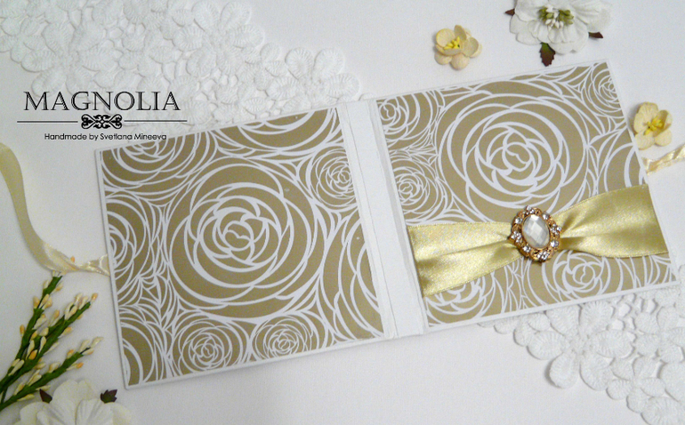 При изготовлении использована бумага премиум-класса с эффектом фольгирования под золото, мерцанием и фольгированием под серебро