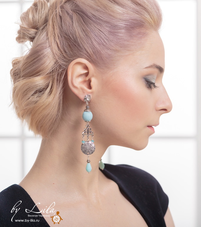 Длинные серьги в этническом стиле.